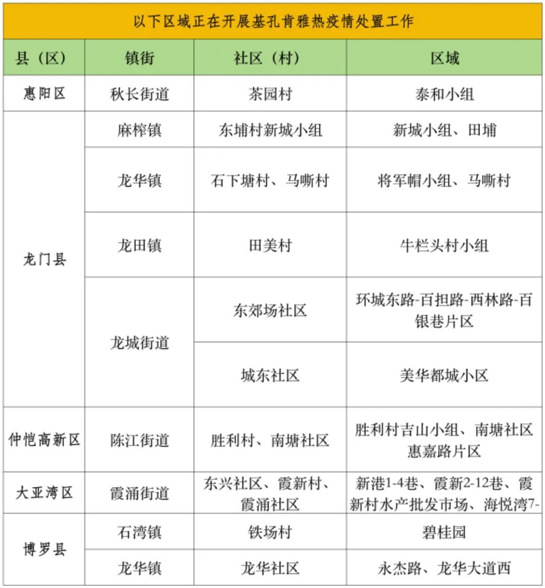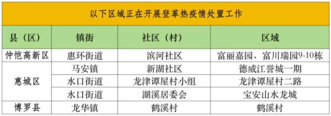 1. 请在上述区域生活、工作或活动的市民朋友们注意做好个人防蚊灭蚊措施,积极清理积水,一旦出现发热伴关节痛、皮疹等相关症状要及时就医,并配合完成基孔肯雅热和登革热相关检测。